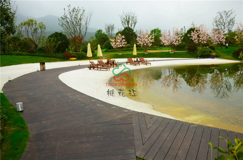 新城源山是南京新城在4A級景區(qū)-寶華山國家森林公園北門以東打造的山居純墅作品,項目內的綠化景觀道路鋪設了桃花江竹材科技的戶外高耐防腐竹地板,值一提的是景觀湖中間及周邊的球形設計,材料均是由桃花江竹材科技的碳化竹片編制成而成,頗具時尚藝術氣息,寧可食無肉,不可居無竹,竹材的加入更加浸潤著山水韻致與佛家禪意,仿若身處仙境,更寄托著現(xiàn)代都市人山湖情結的悠哉生活方式。